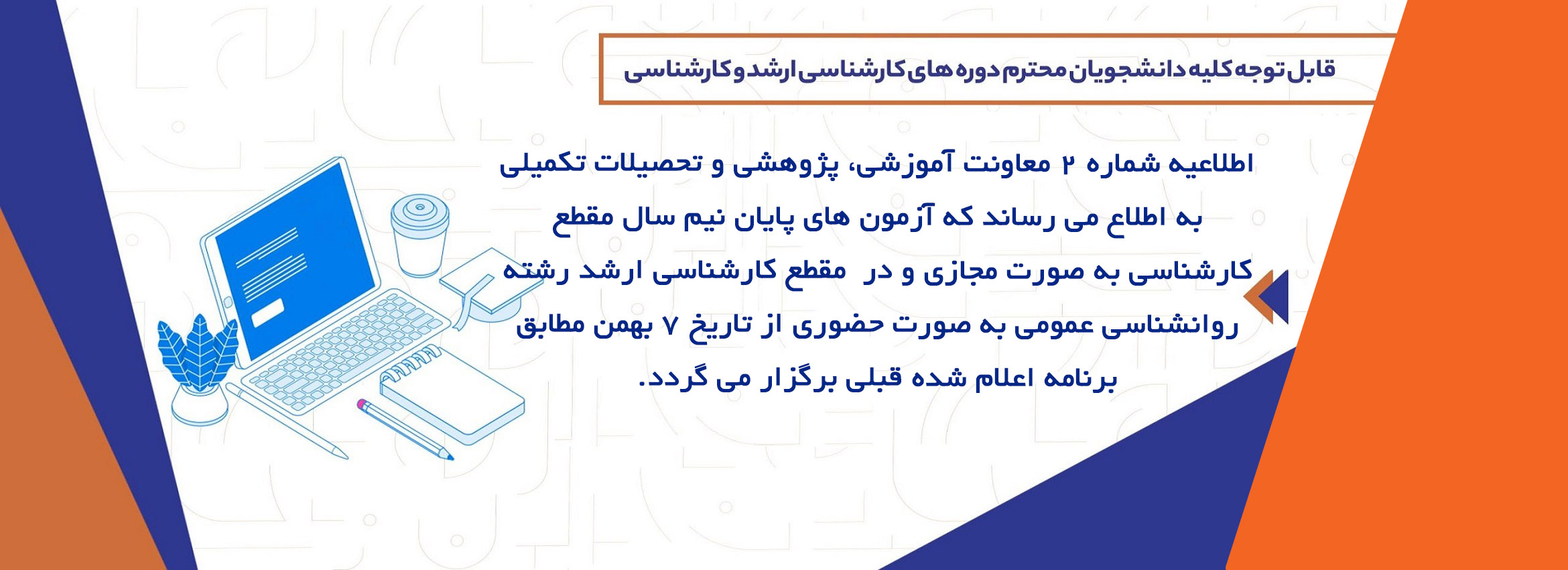 قابل توجه کلیه دانشجویان محترم دوره های کارشناسی ارشد و کارشناسی کلیه امتحانات پایان ترم تا تاریخ 4 بهمن ماه سال جاری...